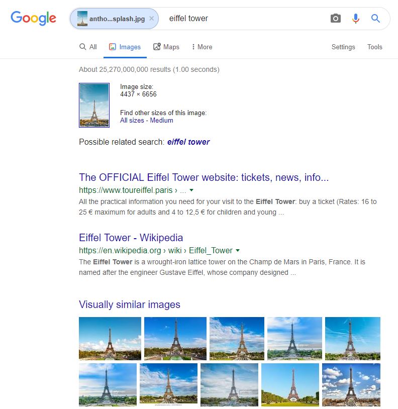 In my example, I will show you how to identify famous building over the internet, even if you do not really know them. I´ve tried this with a few objects and we will use for example something everybody knows: The Eiffel Tower.
